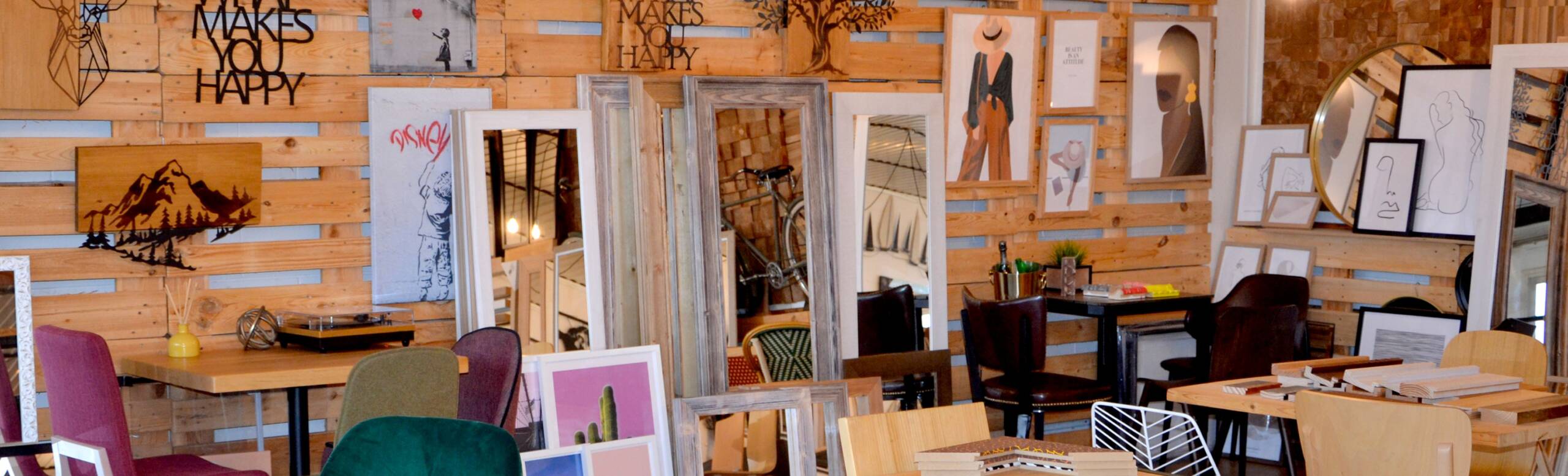Assembly factory where frames, photo frames, mirrors and paintings are made, until they are labeled and packaged.